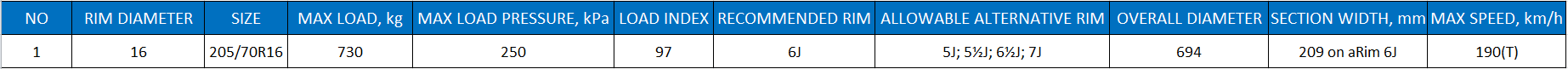 – effective gripping and road holding ability both on a straight road and at turnings;